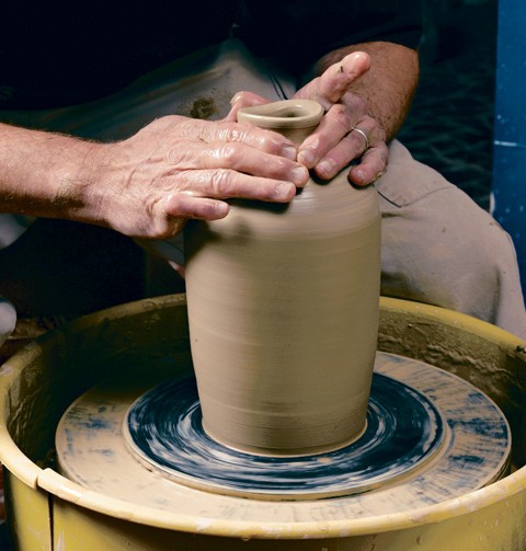 Bats are used to throw pieces on that would be difficult to lift off the wheel head.